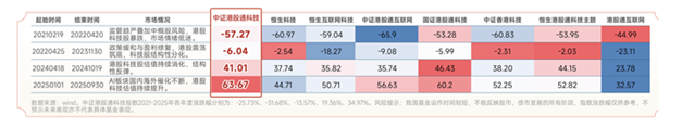 数据来源:wind,截至2026/1/31。中证港股通科技指数2021-2025年各年度涨跌幅分别为:-25.73%-31.68%-13.57%19.36%34.97%。风险提示:我国基金运作时间较短,不能反映股市、债市发展的所有阶段,指数涨跌幅仅供参考,不预示未来表现亦不代表具体基金表现。